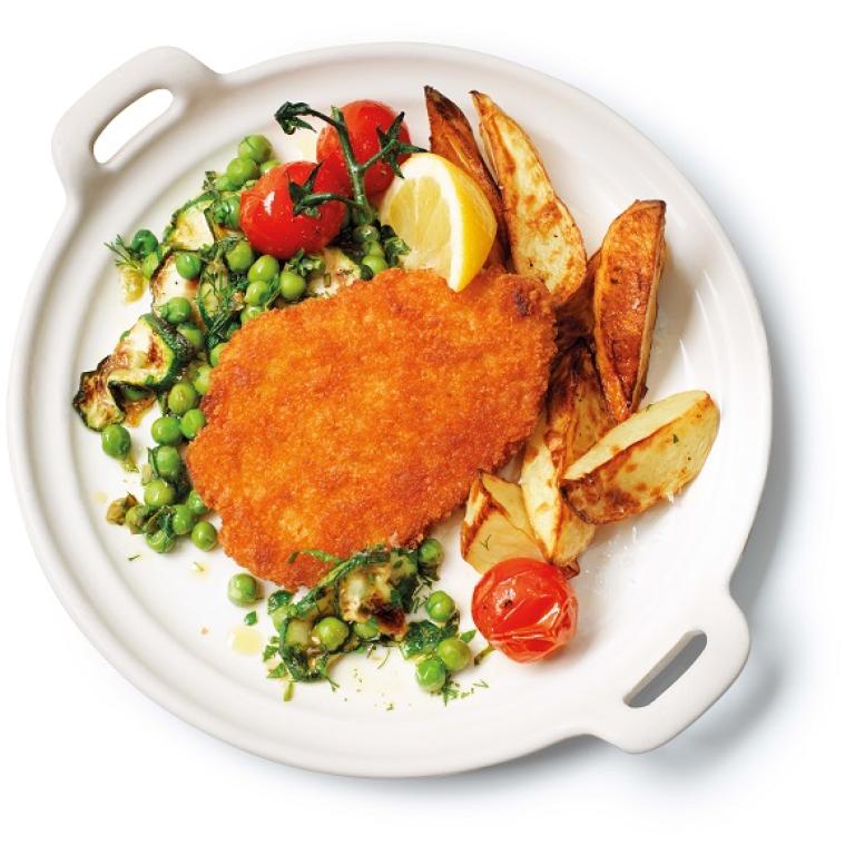 Osmažte Garden Gourmet Veganské řízky podle návodu na obalu do dozlatova a dokřupava.
